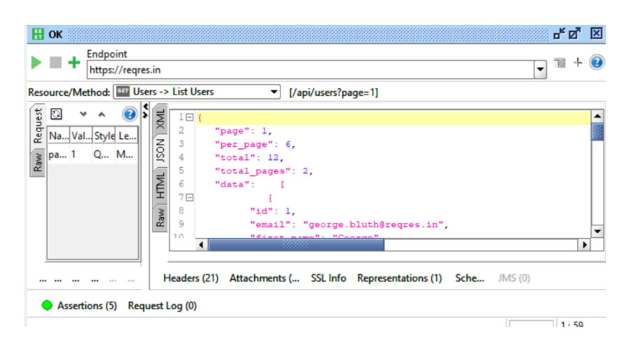 Vamos a editar nuestro “Resource”, para ello haremos “doble click” sobre él, y en la pantalla que se nos abre introducimos el path sobre el que vamos a trabajar. En nuestro caso, el path completo sería “https://reqres.in/api/users”, por lo que solo debemos añadir /api/users ya que el resto del path lo hemos definido en el nivel superior (Service)